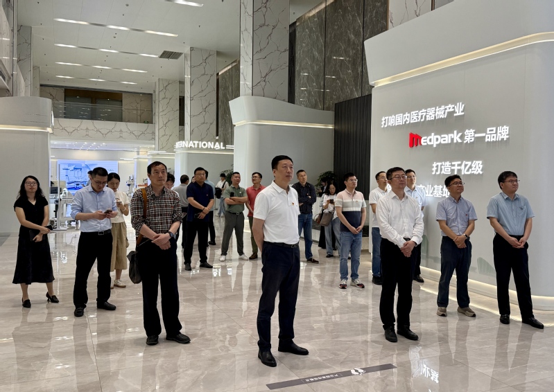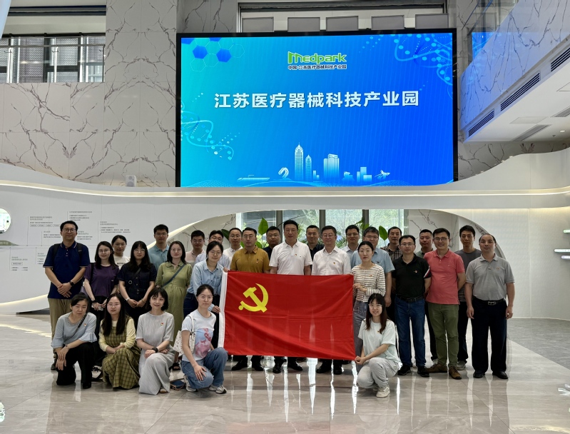 随后,全体人员来到江苏医疗器械科技产业园,实地调研党建引领科技创新的实践成果。在苏州医疗器械产业发展集团有限公司党委书记、总经理刘颐称陪同下,科技党委一行详细了解产业园建设历程、党建品牌培育及产学研协同创新机制。调研过程中,双方围绕“党建+产业链”融合模式展开交流,科技党委提出将建立“产业需求档案”,精准对接高校科研成果与地方产业需求,推动科技成果转化落地。产业园相关负责人介绍了“党建联建促技术攻关”的典型案例,强调“以组织优势凝聚创新合力”的重要性,为高校服务区域高质量发展提供了新思路。