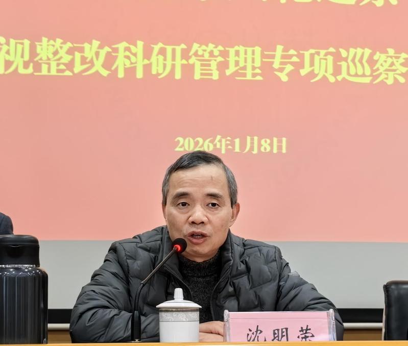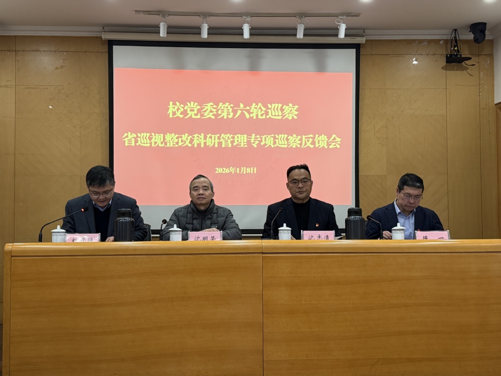 根据校党委巡察工作安排,2026年1月8日,省巡视整改科研管理专项巡察情况反馈会在红楼115会议室召开。第四巡察组副组长沈志清向科技党委、人文社会科学处党支部反馈了巡察情况,校党委副书记、副校长沈明荣对抓好巡察整改工作提出要求。会议由科技党委书记刘开强主持,两家被巡察单位主要负责人分别作了表态发言。